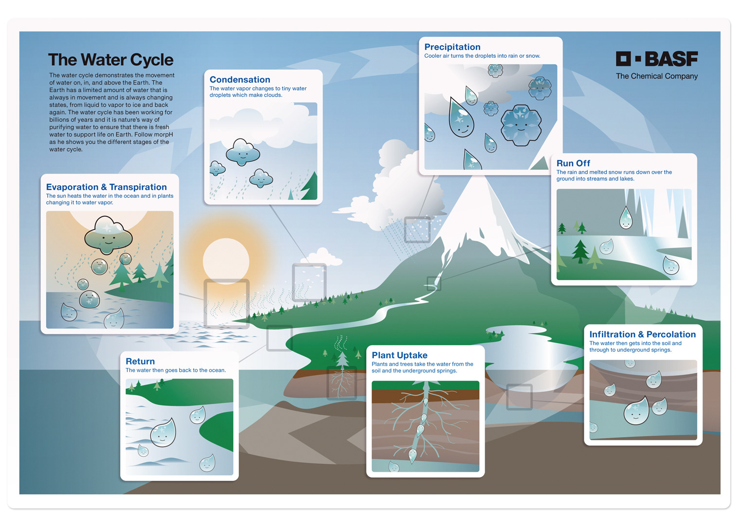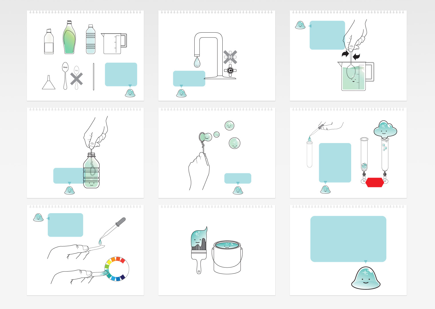 Created a fun expressive character MorpH the water molecule who can be manipulated and changed chemically thru easy to do illustrated experiments