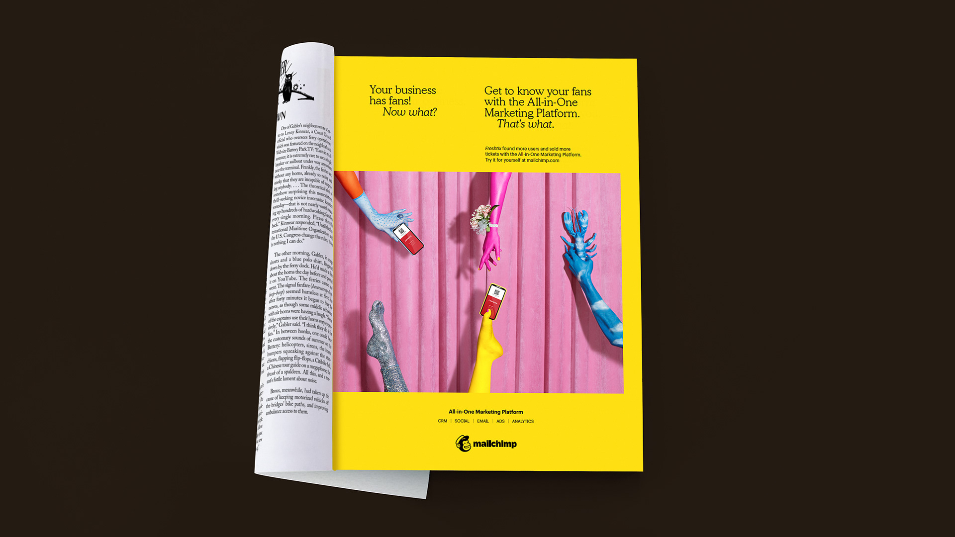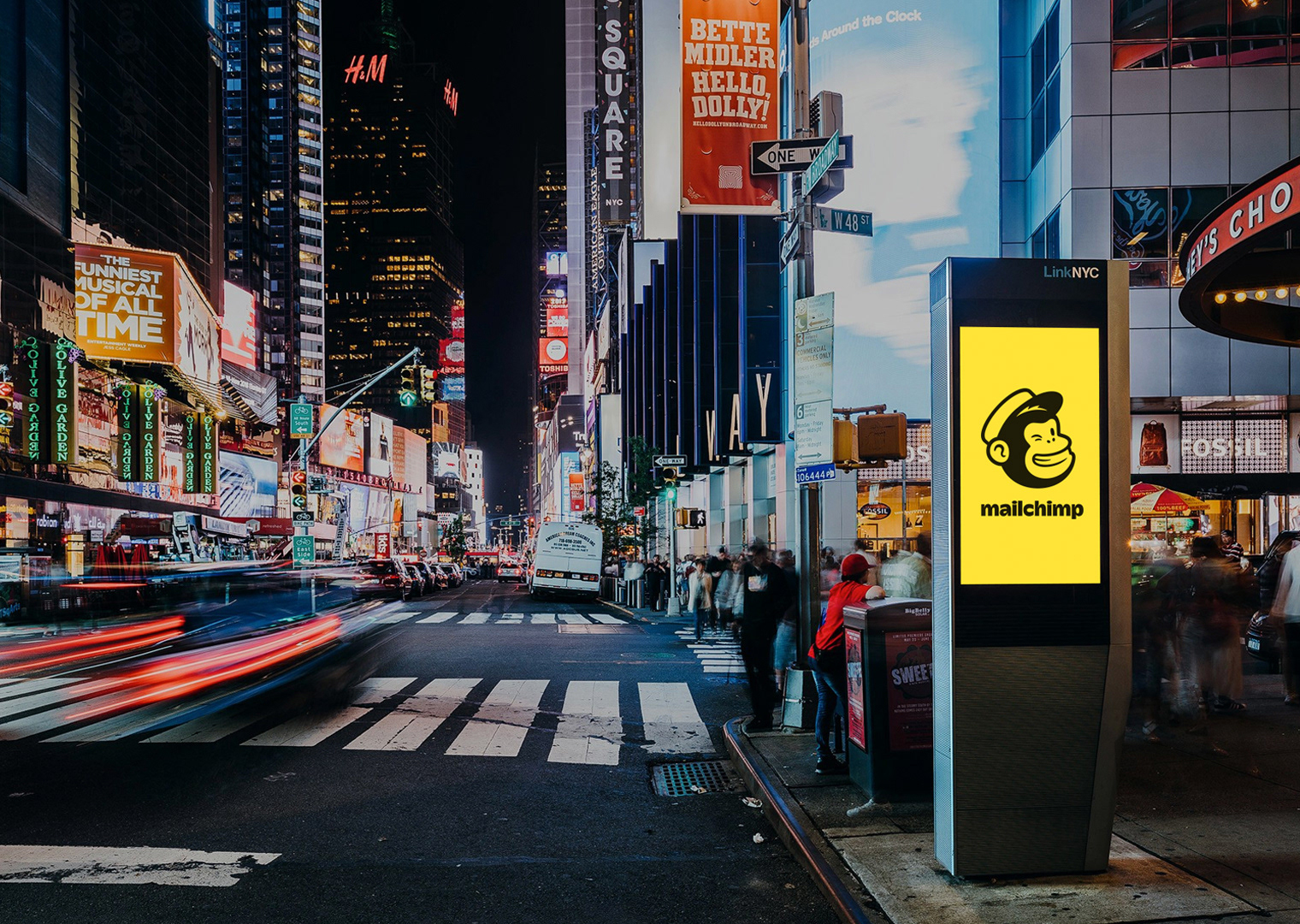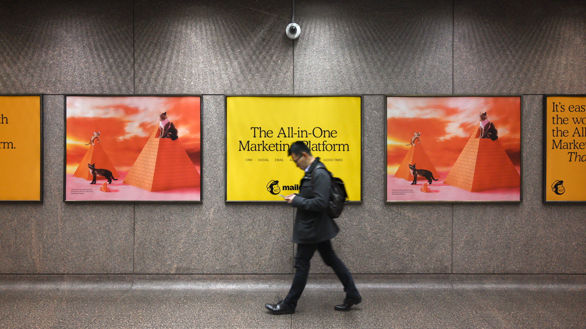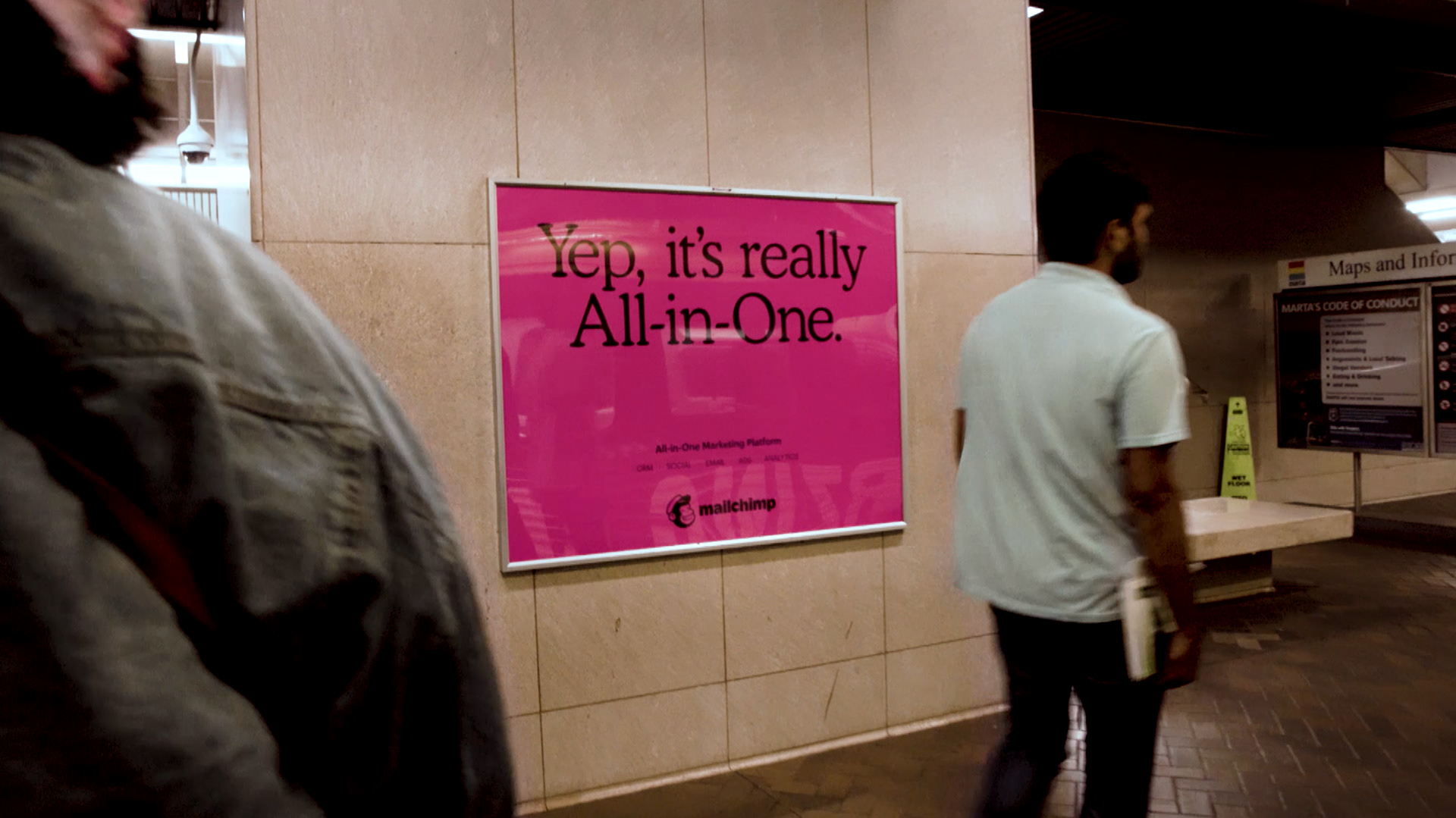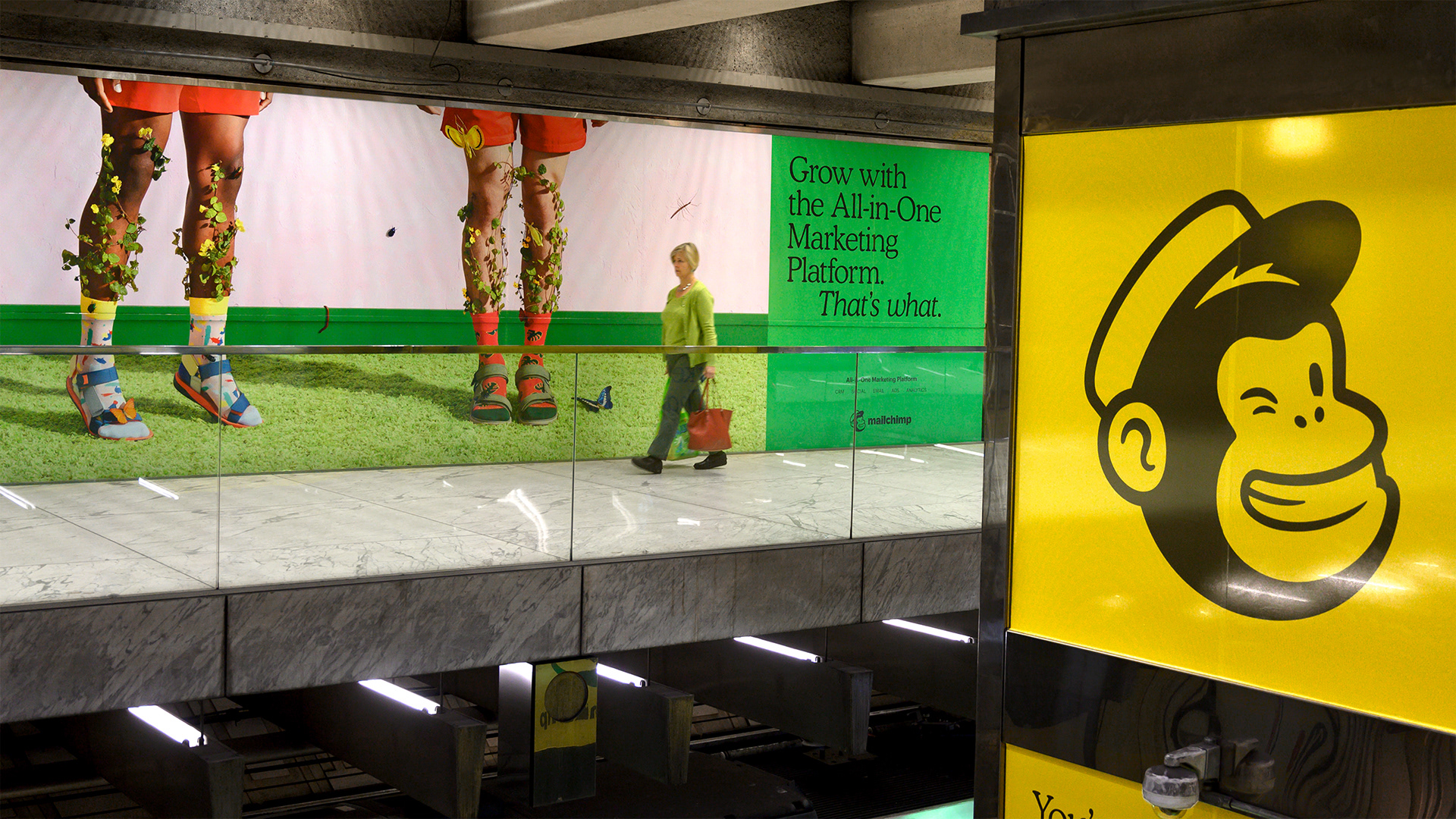 OOH marketing campaign that focused on MailChimp's All-in-One comprehensive marketing platform using 383 total units including station dominations in San Francisco and Atlanta, magazine ads, digital walls, kiosks, billboards, and a full subway wrap in New York City